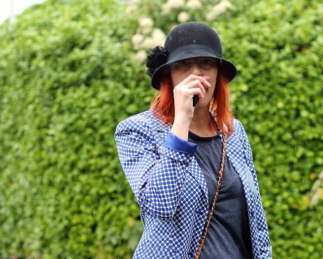 AntwortenLöschenOh my God, that beautiful set, I love it. I really like this stamp with blue polka dots, it is a real cute. And I love the pattern of the suit jacket and pants. I like the hem on the sleeves and pants design, so well done and so appealing. The combination with klein heels and gray t-shirt is perfect. The hat is a touch of elegance. This proposal is very close to my way of understanding the feminine, elegant, simple and attractive fashion. A great proposal, a great outfit. Congratulations Kira!
